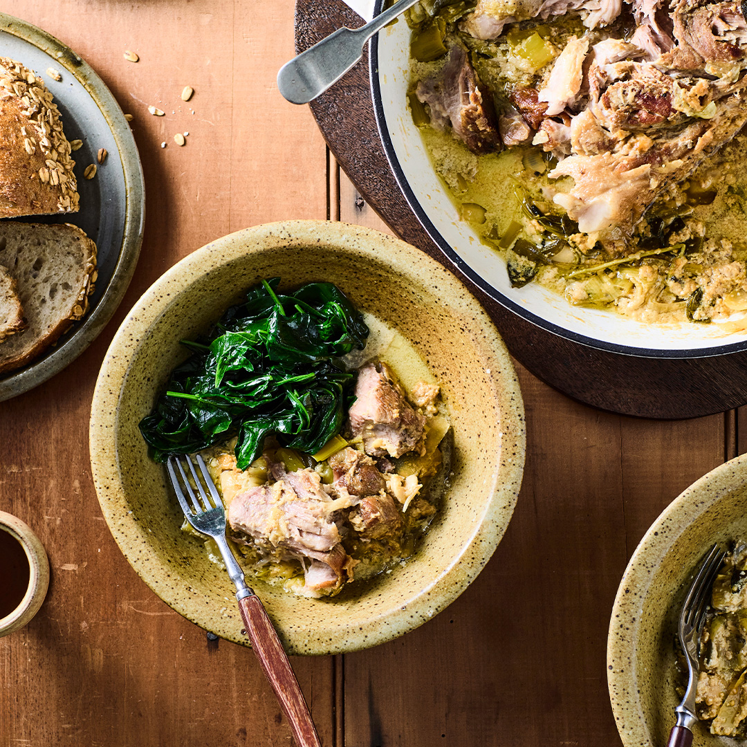 This succulent pork roast is made tender with the addition of milk and lemon. As it cooks, the lactic acid in the milk tenderises the pork and curdles into rich, dark nuggets. It’s delicious served with mashed potatoes or polenta to sop up the juices.